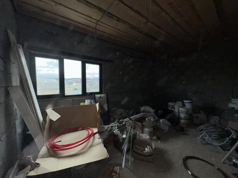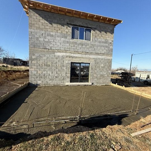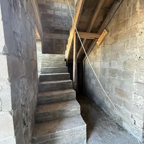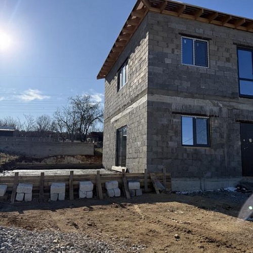 Дом построен из шлакоблока, утеплен пенопластом, крыша - мягкая кровля 4-скатная.
