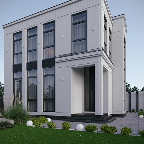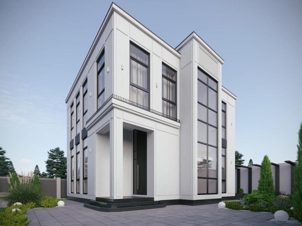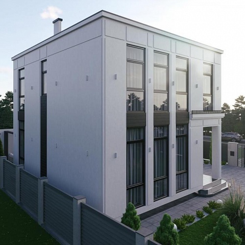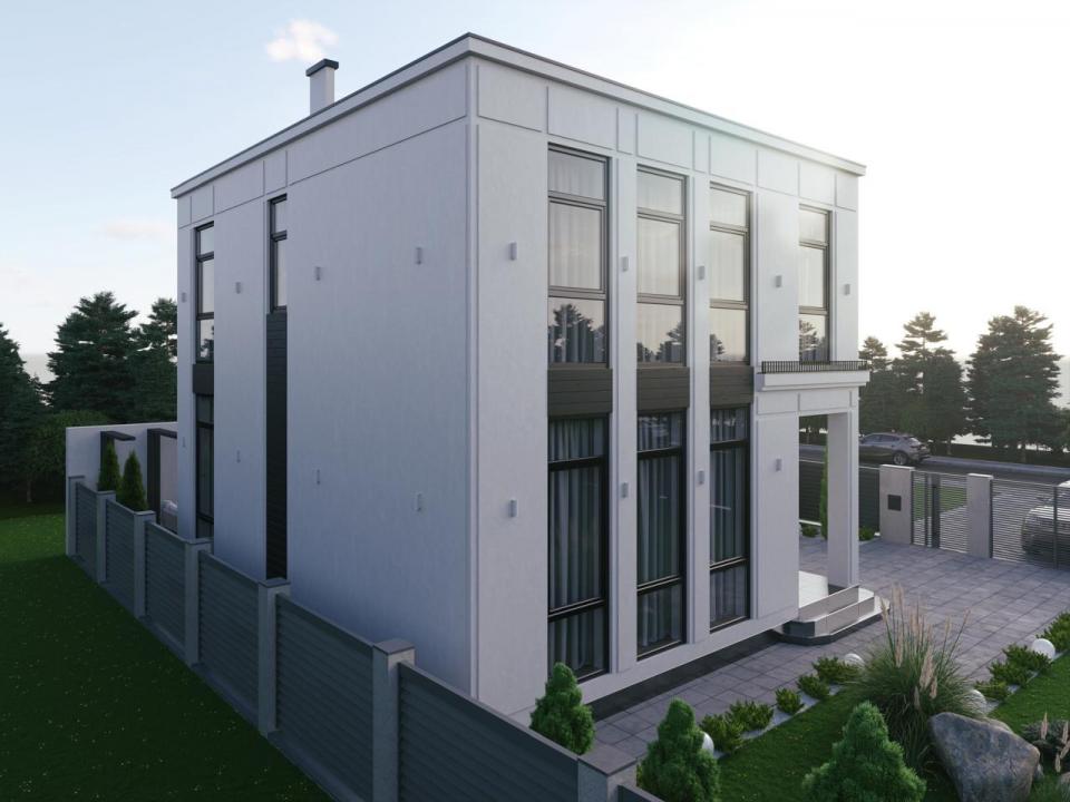 Территория дома будет огорожена забором (Фанцузом или бетонным как на рендере)