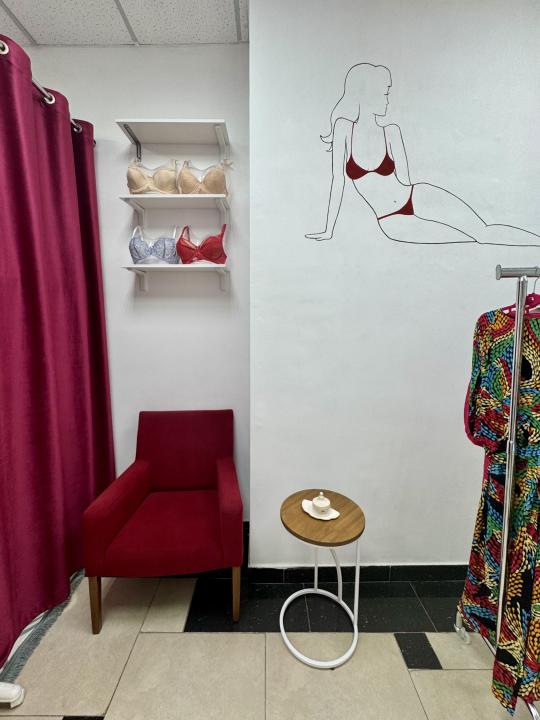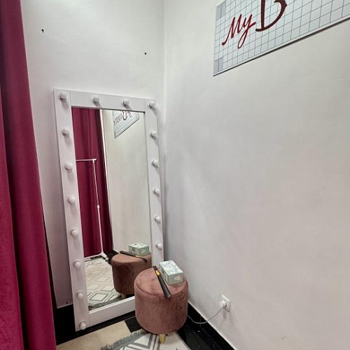 - Оборудованная примерочная с зеркалом и бархатными шторами;