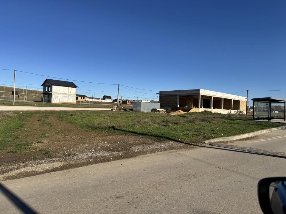 Фото с участка, сосед рядом строит дом, участок ровный